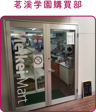 茗溪学園中高等学校のロビーにて展開中。文房具やお弁当などを販売しています。